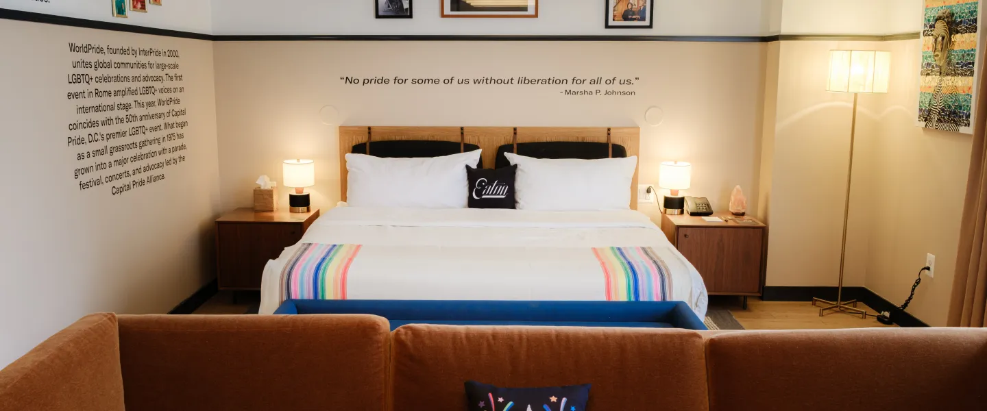 At Eaton DC. our doors are open to all. Join us in creating a space where history, joy, and community come together—because Pride is more than a moment; it’s a movement. We are committed to fostering an inclusive, safe space where everyone can be their authentic selves, not today or this week or month, but year-round. From hosting electrifying drag performances to championing trans inclusion in the workforce, we uplift LGBTQ+ voices, honor the movement’s pioneers, and create a community where all identities are seen, heard, and celebrated.