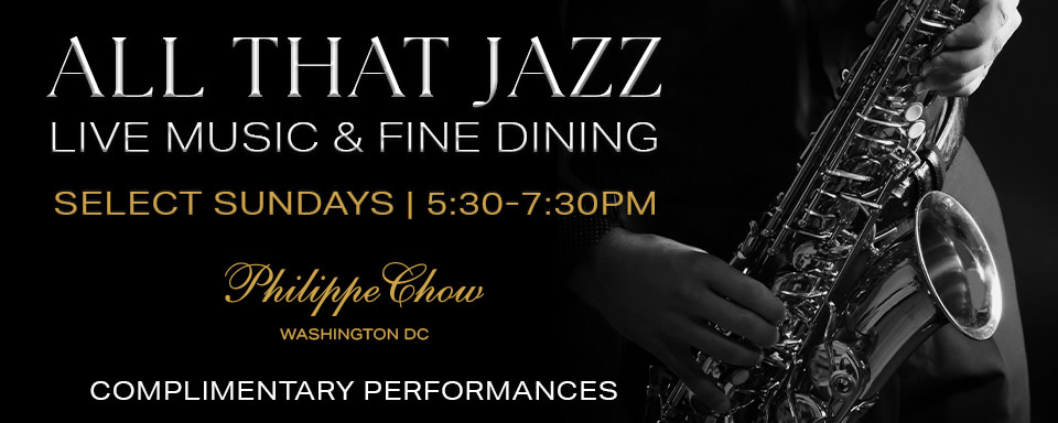 All That Jazz at Philippe Chow DC, located at The Wharf — 635 Wharf St SW, Washington, DC 20024. Enjoy complimentary live jazz performances on select Sundays from 5:30 p.m. to 7:30 p.m. featuring performances by Lena Seikaly and Daniel Murray.