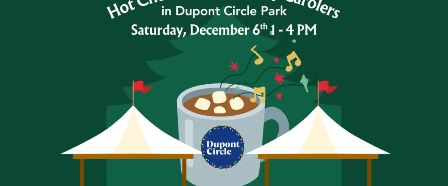 Enjoy sips of free hot chocolate provided by Teaism as well as live holiday carolers singing in the Circle! On Saturday, December 6th from 1 to 4 PM, the Dupont Circle BID will be set up in Dupont Circle Park at a tent giving away hot chocolate while supplies last for free to sip while you listen to live holiday carolers and shop at the holiday markets around the neighborhood.