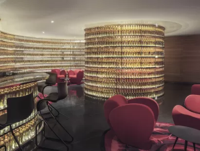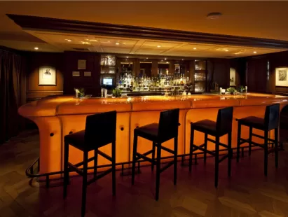 From the dramatic entrance of The Watergate Hotel, a wall of 2,500 illuminated amber whisky bottles lure guests into the perfect setting for an intimate tete-a-tete or a high caliber meeting.
