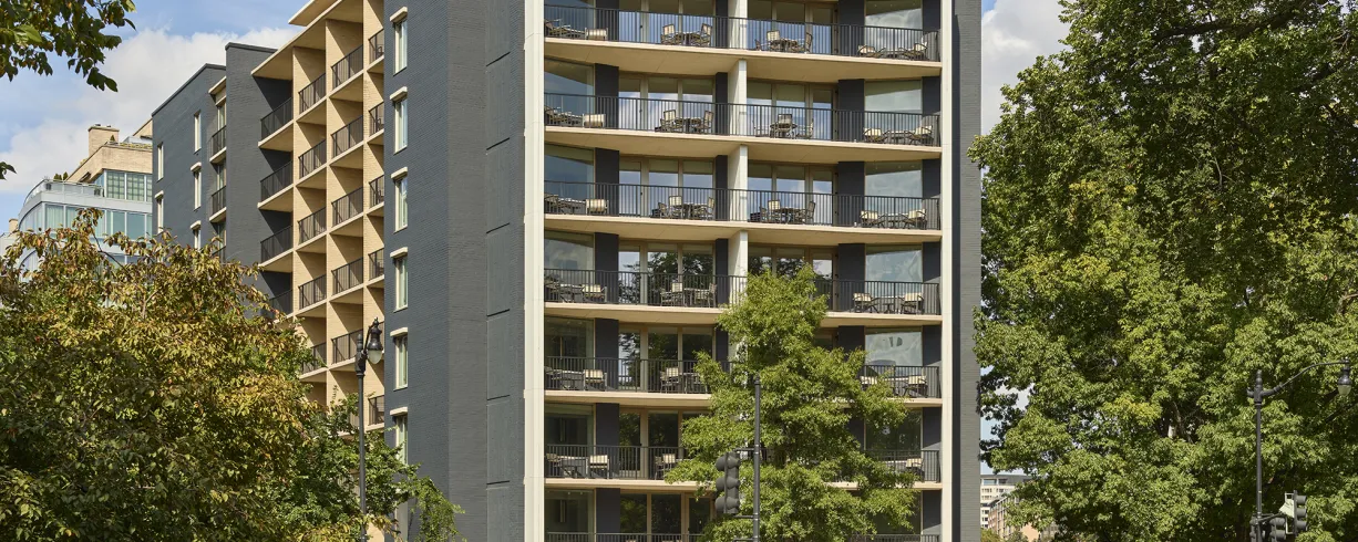 Hotel AKA Washington Circle offers a sophisticated stay in the vibrant Foggy Bottom/West End neighborhood in downtown Washington, DC. Conveniently located directly across from the Foggy Bottom Metro station, this boutique hotel features luxury accommodations perfect for both short and long-term stays, including contemporary guestrooms and spacious one-bedroom suites, many with terraces and full kitchens or kitchenettes.
