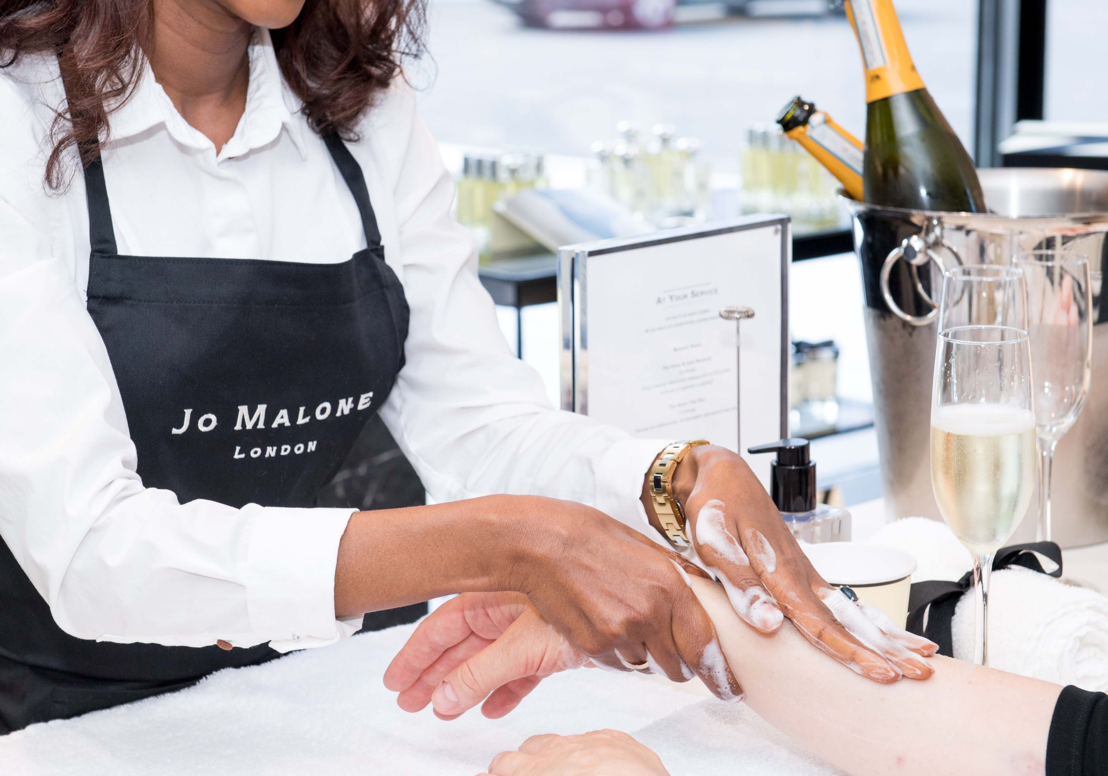 Jo Malone London is synonymous with a bespoke style of service where every need is anticipated. From advice on styling a scented statement to a specially chosen gift. Or simply indulge in some pampering me-time. A relaxing Hand Arm Massage at the Tasting Bar™ is an invitation to engage the senses, to discover Fragrance Combining™ while enjoying drinks and treats inspired by the scents.
