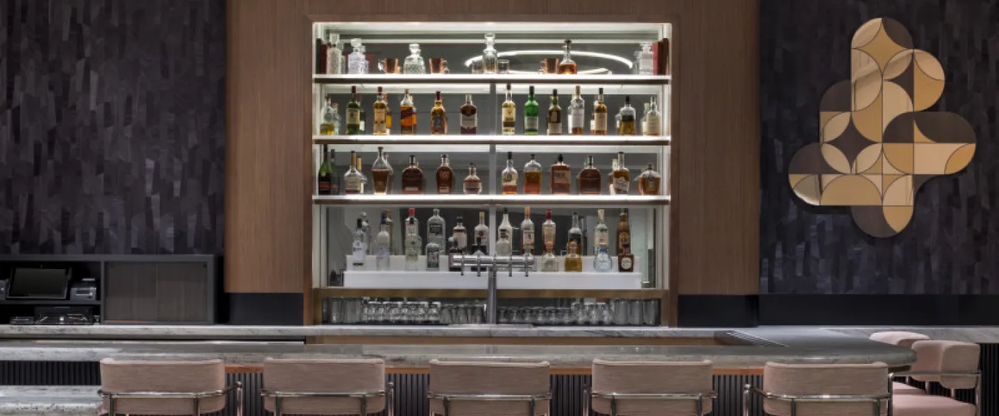 A lively and trendy lobby bar with dining space, in the heart of downtown dc, specializing in gin and bourbon cocktails, vast..
