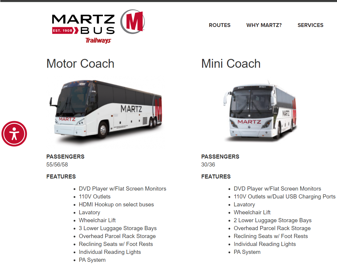 Established in 1908, Martz Bus is a 5th-generation, family-owned motorcoach company headquartered in Wilkes-Barre, Pennsylvania. Our charter division services Maryland, Washington, DC, Northern Virginia, New York, New Jersey and Florida markets.
