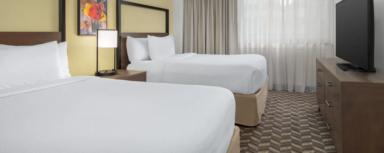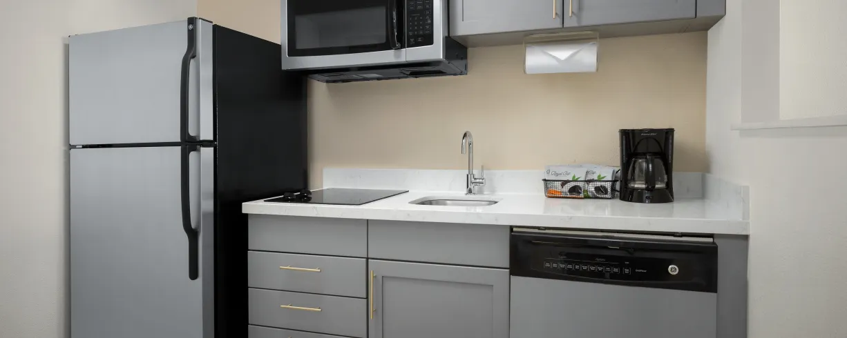 Enjoy spacious residential-style suites with full kitchens and pull-out sofas, plus free Wi-Fi and flat-screen TVs. Start your day with complimentary hot breakfast, and take advantage of our 24-hour fitness center, guest laundry, and grocery delivery. Whether you're here for a few days or a few months, we make it easy to feel at home.