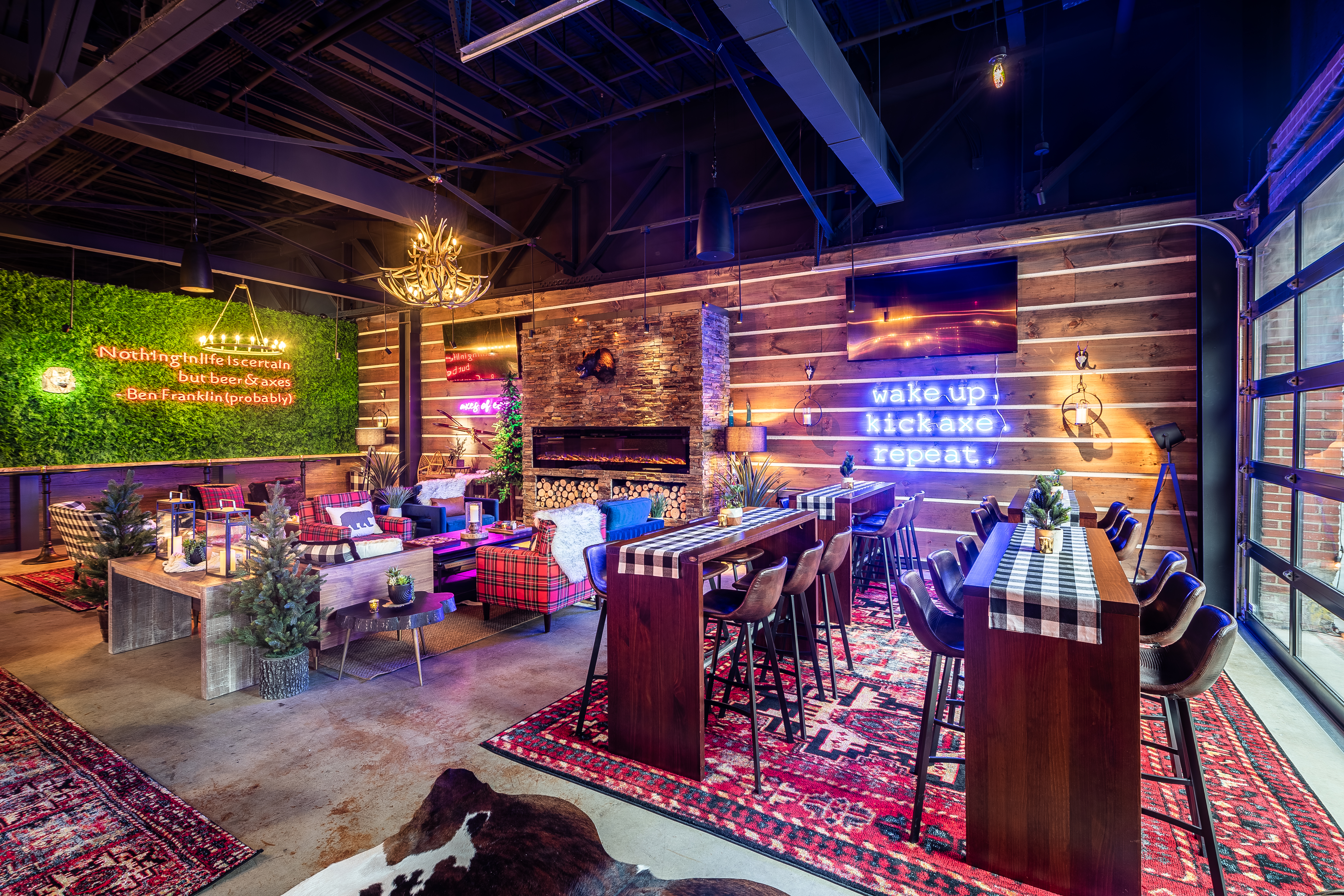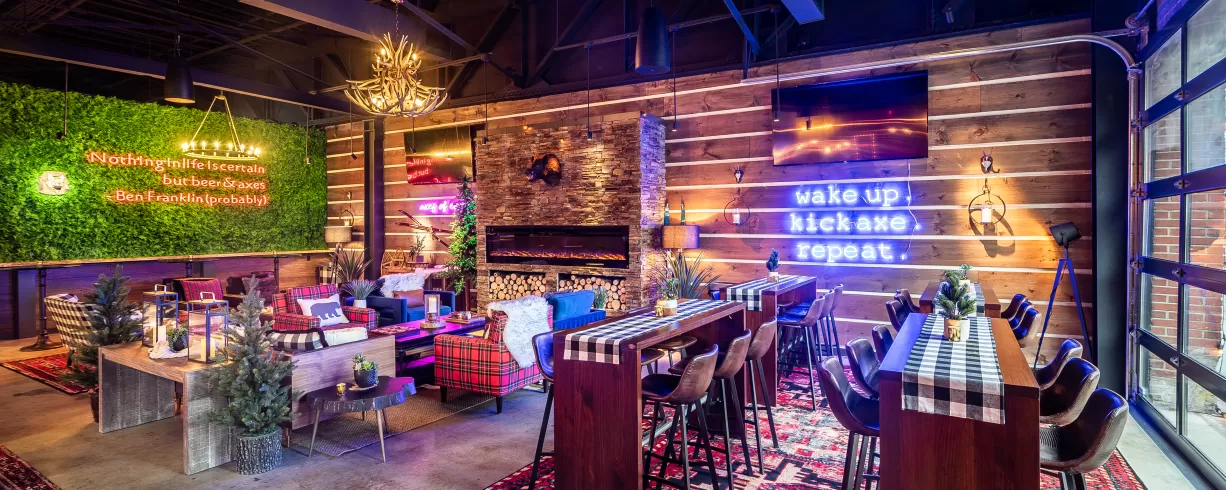Swing into Kick Axe, located downstairs. Kick back and relax in our little slice of lodge-like heaven, channel the flannel in an axe-throwing adventure, challenge friends to a throwback board game, chill at our stocked bar, order a bite to eat & more – bullseye!