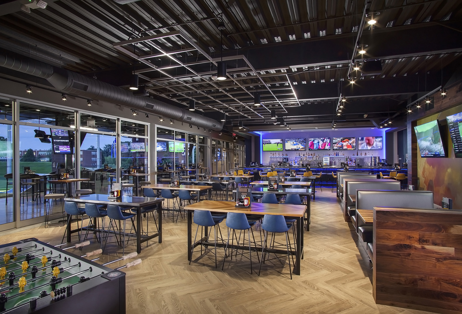 Here at Topgolf, we've made socializing a sport through a blend of technology and entertainment - and that's just the game! If you journey thorough our venue, you'll find a place buzzing with energy. Ever Topgolf features dozens of climate-controlled hitting bays for year-round comfort with HDTVs in every bay and throughout our sports bar restaurant.