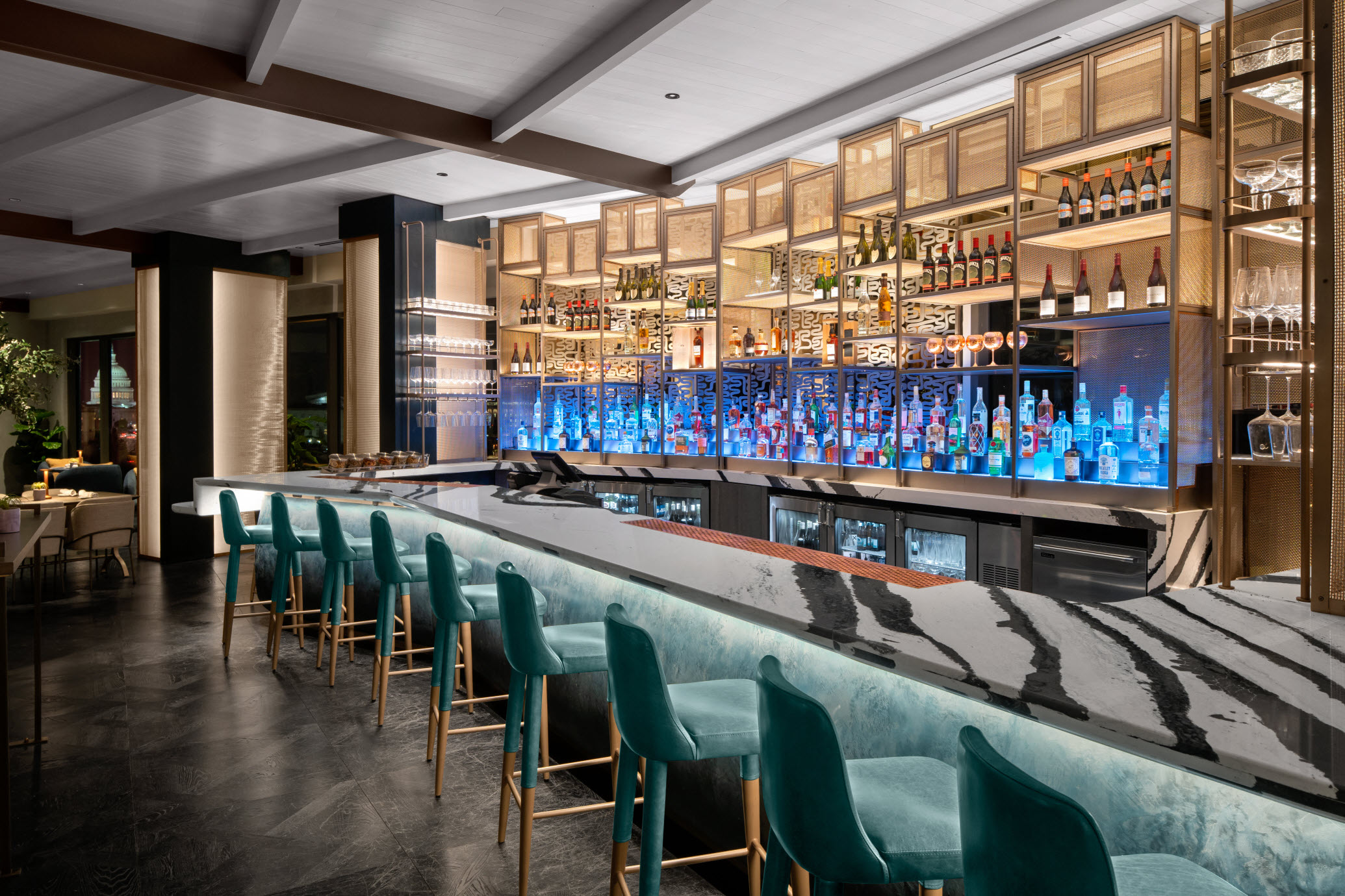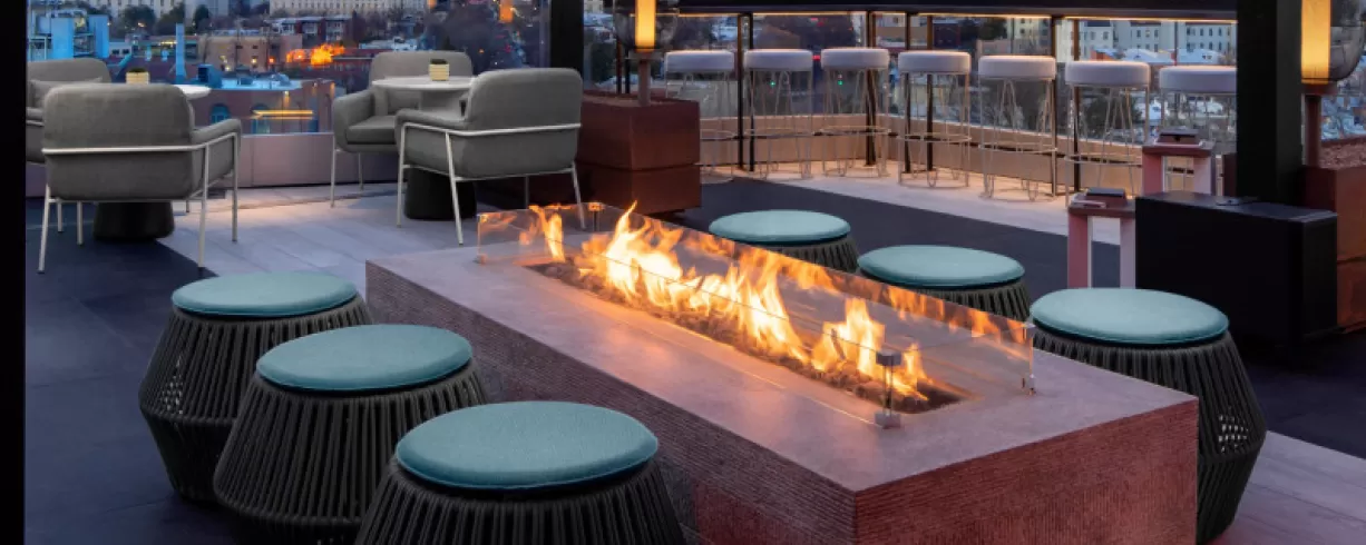 Perfect for VIP and social functions with a backdrop, Smoke & Mirrors is our rooftop skybar, offering amazing views of the Capitol Dome. Perfect open-air space or close the retracting roof for inclement weather. Ask us about our buyout requirements.