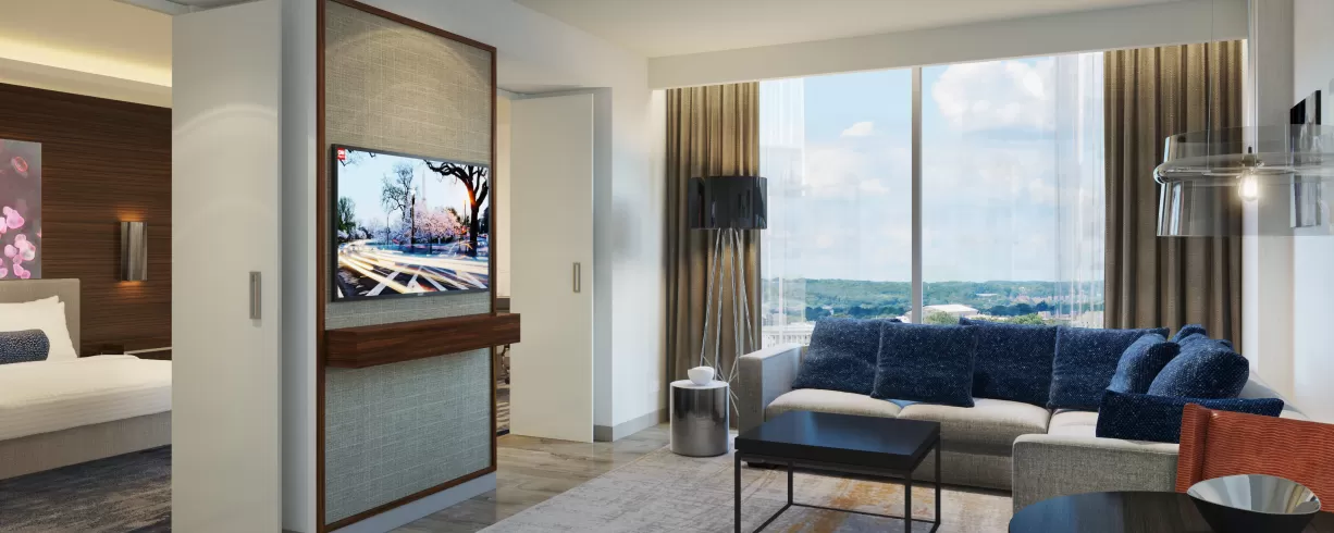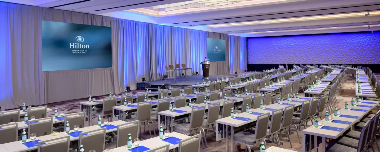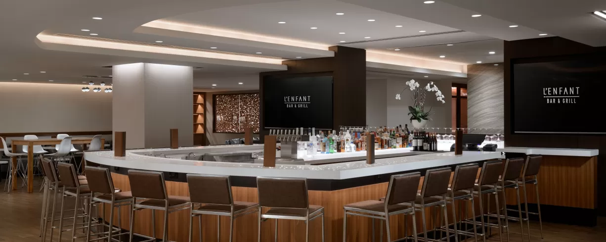 The welcoming and luxurious space is filled with delectable dining options, a sophisticated bar and lounge and 23,000+ sq. ft. of unique and innovative event venues. Their 23,000 sq. ft. of event space includes two contemporary ballrooms, the 5406 sq. ft. L'Enfant Ballroom and the 4,240 sq. ft. Gallery Ballroom.