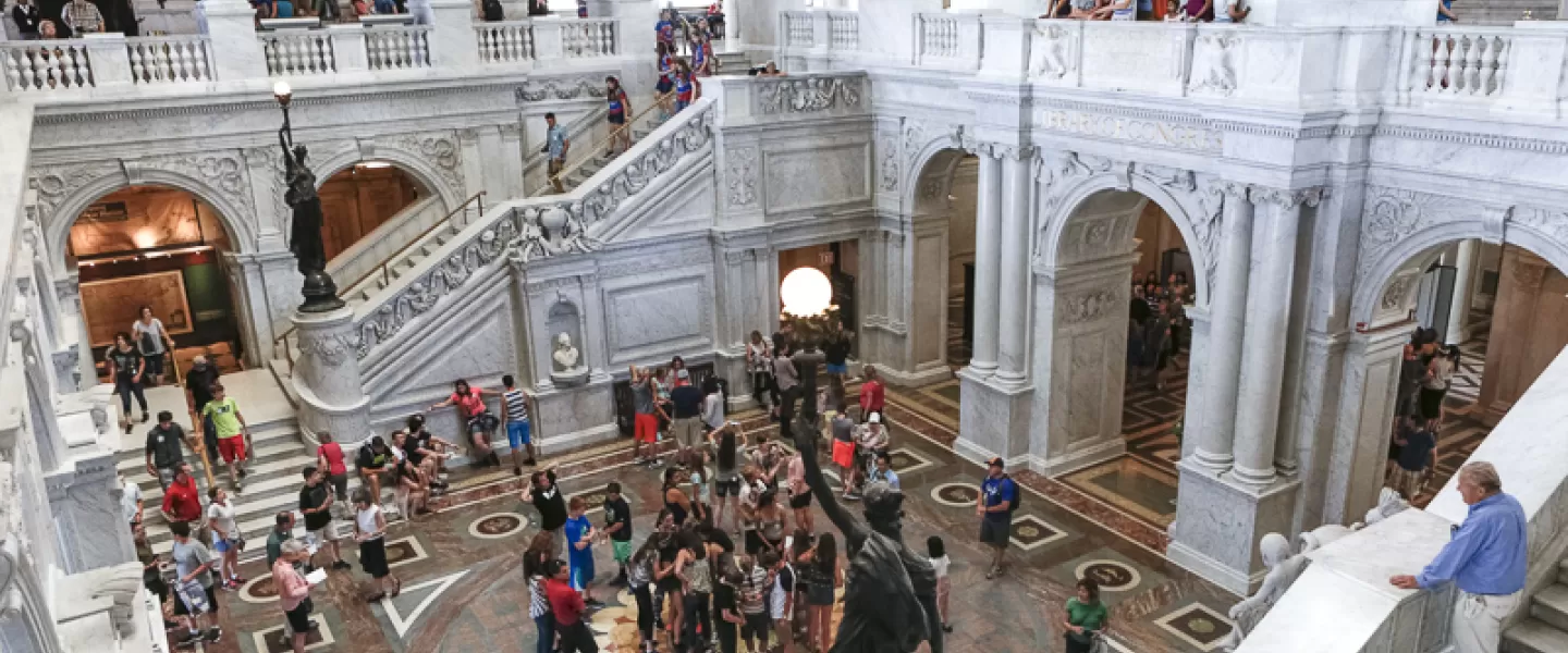Visit the Library of Congress' Thomas Jefferson Building, known for its magnificent 19th-century architecture and changing exhibitions. Discover historical treasures and photographs documenting America at your national library. Open Tuesdays - Saturdays 10 a.m. - 5 p.m. Free and open late 5 - 8 p.m. on Thursdays for Live! at the Library. Free timed-entry passes required at https://loc.gov/visit. Closed Sundays and Mondays.