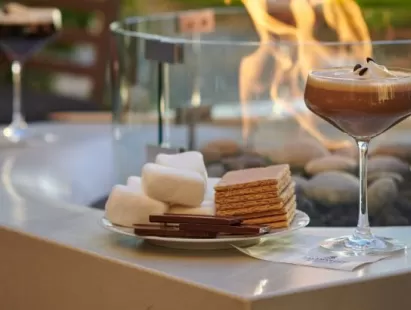 Cozy up by the fire pit and enjoy Sips & S'mores on our tranquil Lounge Terrace, offering the perfect way to unwind after a day of exploring or meetings of importance